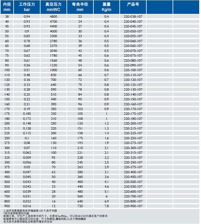 管壁:聚酯纤维外包氯丁橡胶涂层