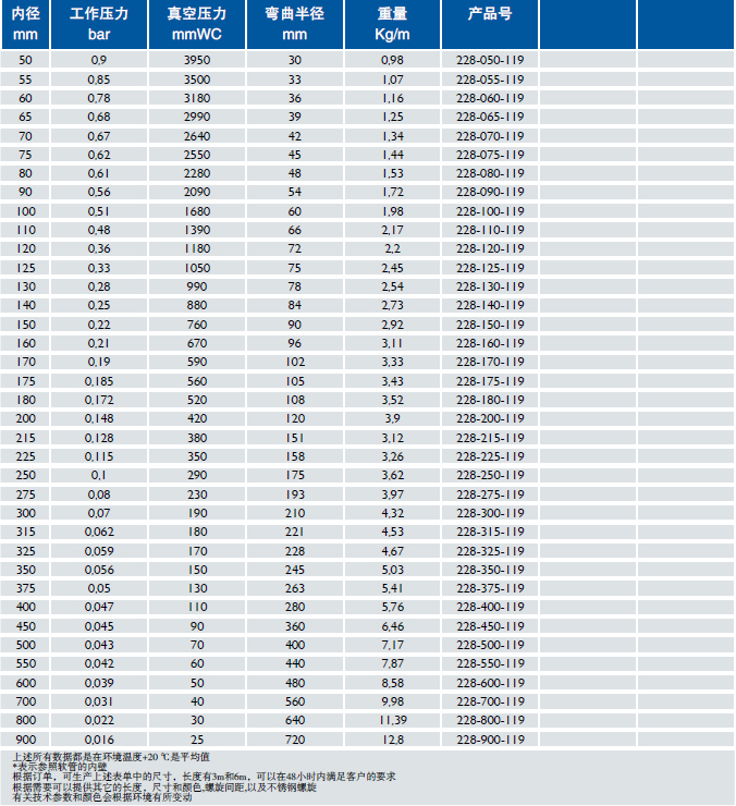 ● 特殊的夹紧方式,保证了软管材料和外部螺旋钢丝之间的高拉伸强度