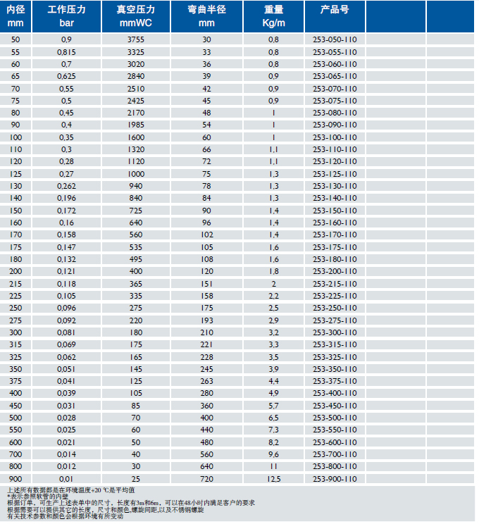 ● 特殊的夹紧方式,保证了软管材料和外部螺旋钢丝之间的高拉伸强度
