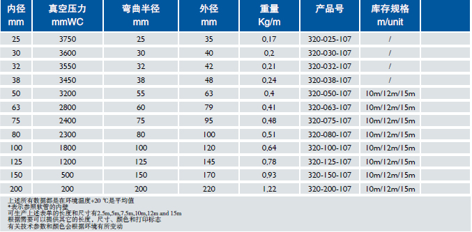 管壁:聚酯型夹织物,外包EPDM/PP