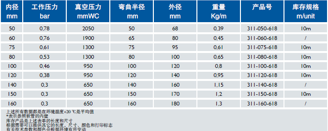管壁:聚酯型聚氨酯,添加了阻燃剂(符合DINISO 4649标准,比聚醚型聚氨酯更耐磨)