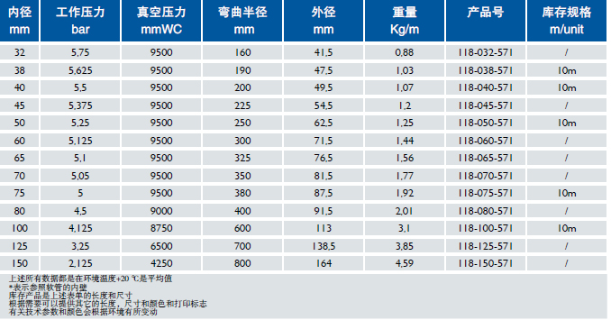 管壁:聚醚型聚氨酯,食品级(FDA)