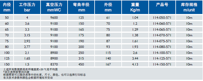 管壁:聚醚型聚氨酯,食品级(FDA),添加防静电因子