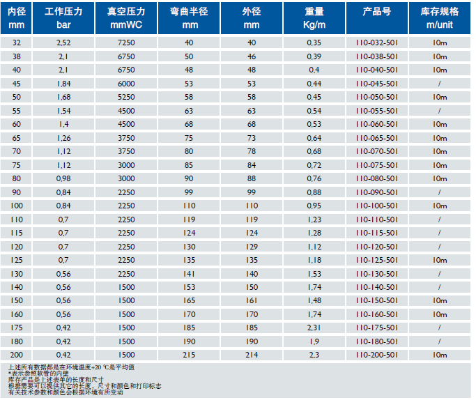 管壁:聚醚型聚氨酯,食品级