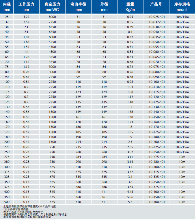 ● 抽吸/输送软管用于耐磨性固体,液体和气体