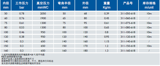 管壁:聚酯型聚氨酯,添加了阻燃剂(符合DINISO 4649标准,比聚醚型聚氨酯更耐磨)
