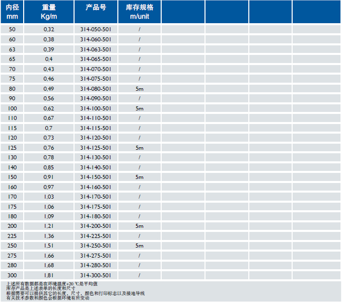 ● 无螺旋增强输送软管,用于输送耐磨性固体